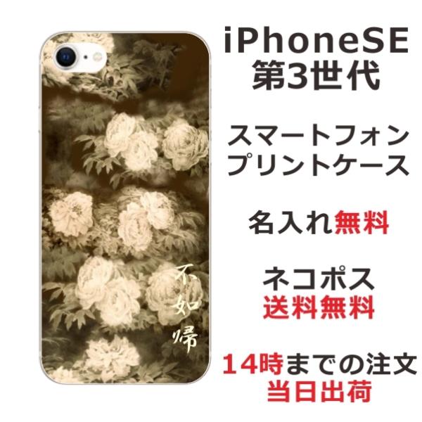 iPhone SE 第3世代 らふら 名入れ スマホケース 和柄 セピア牡丹