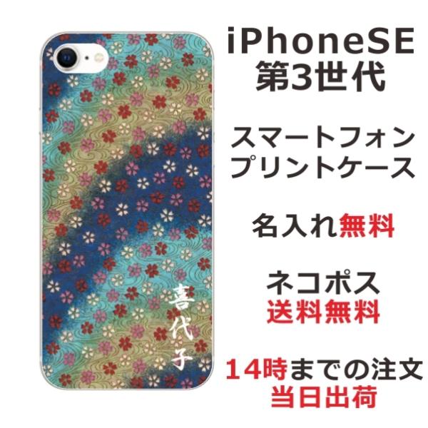 iPhone SE 第3世代 らふら 名入れ スマホケース 和柄 和小花ブルーグラデ