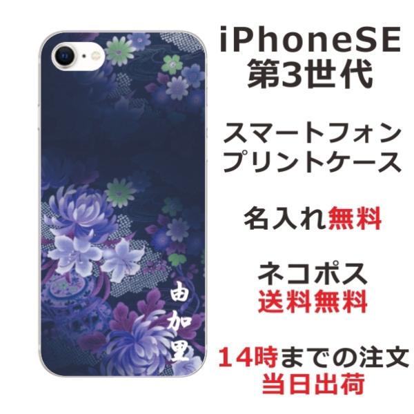 iPhone SE 第3世代 らふら 名入れ スマホケース 和柄 和花青紫グラデ