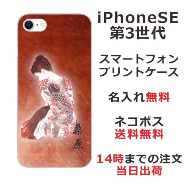 iPhone SE 第3世代 らふら 名入れ スマホケース 和柄 艶女昇鯉