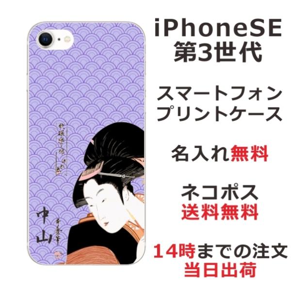 iPhone SE 第3世代 らふら 名入れ スマホケース 和柄 浮世絵