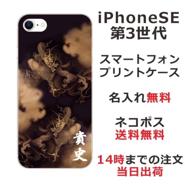 iPhone SE 第3世代 らふら 名入れ スマホケース 和柄 昇龍セピア