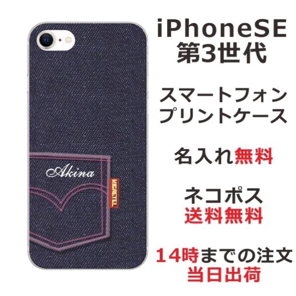 iPhone SE 第3世代 らふら 名入れ スマホケース デニムプリントケース