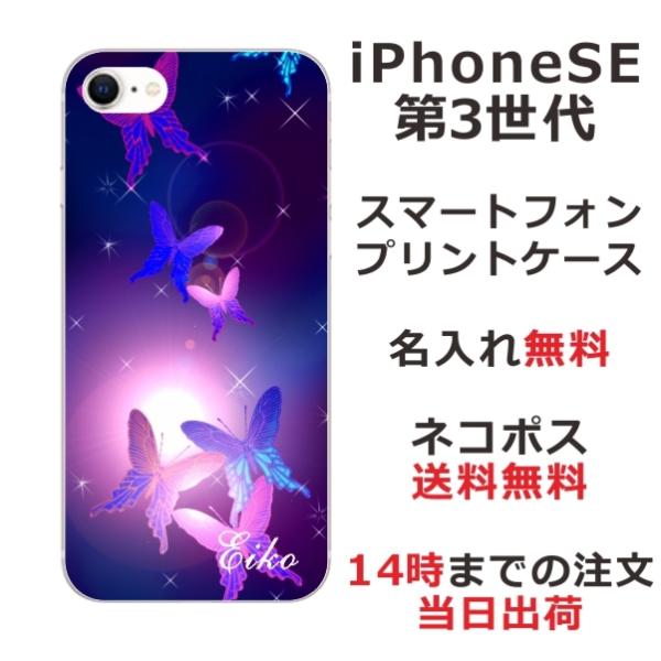iPhone SE 第3世代 らふら 名入れ スマホケース 和柄 紫蝶々