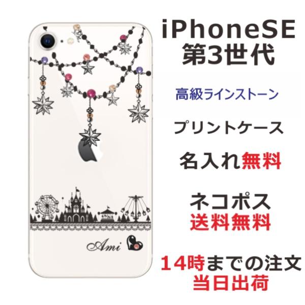 iPhone SE 第3世代 らふら 名入れ スマホケース ラインストーン 遊園地