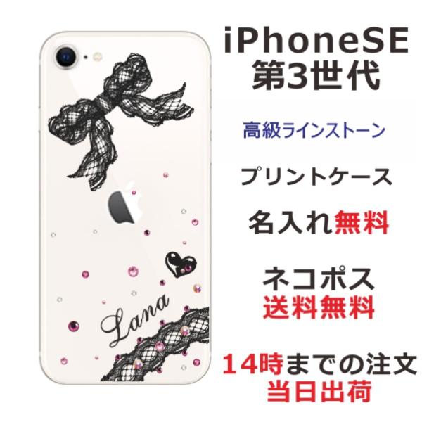 iPhone SE 第3世代 らふら 名入れ スマホケース ラインストーン レースリボン