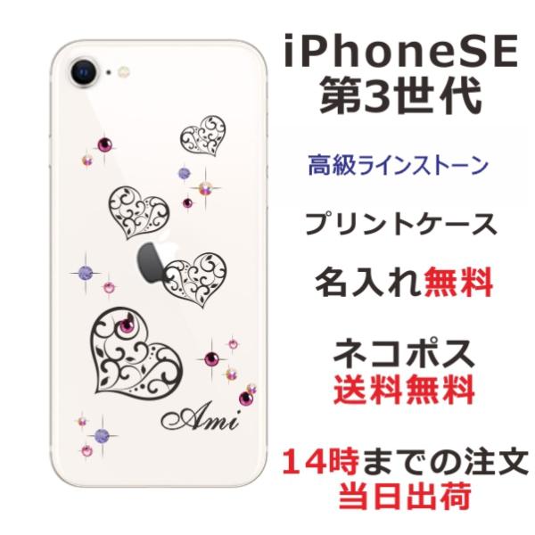 iPhone SE 第3世代 らふら 名入れ スマホケース ラインストーン グラデハート
