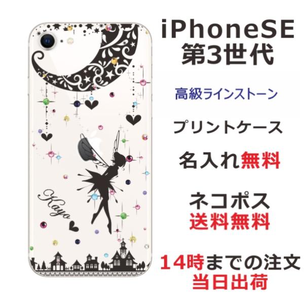 iPhone SE 第3世代 らふら 名入れ スマホケース ラインストーン ティンカーベル