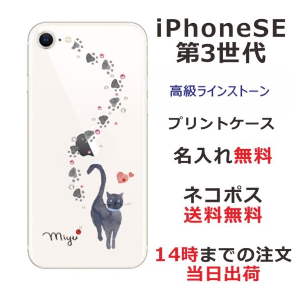 iPhone SE 第3世代 らふら 名入れ スマホケース ラインストーン 黒猫