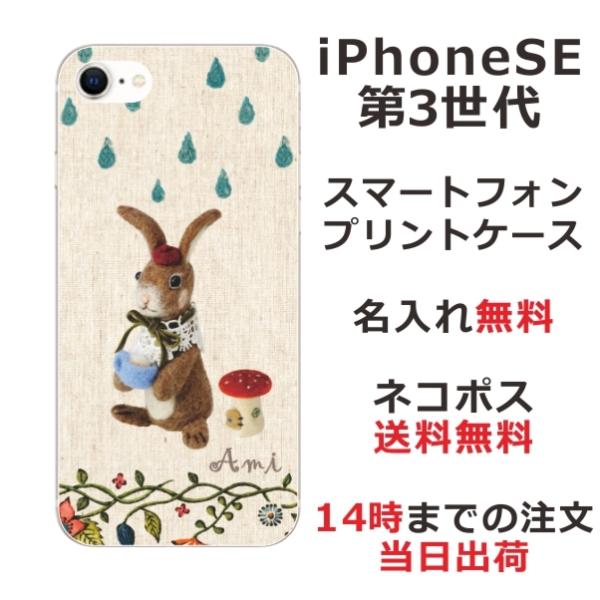 iPhone SE 第3世代 らふら 名入れ スマホケース 雨降りうさぎ