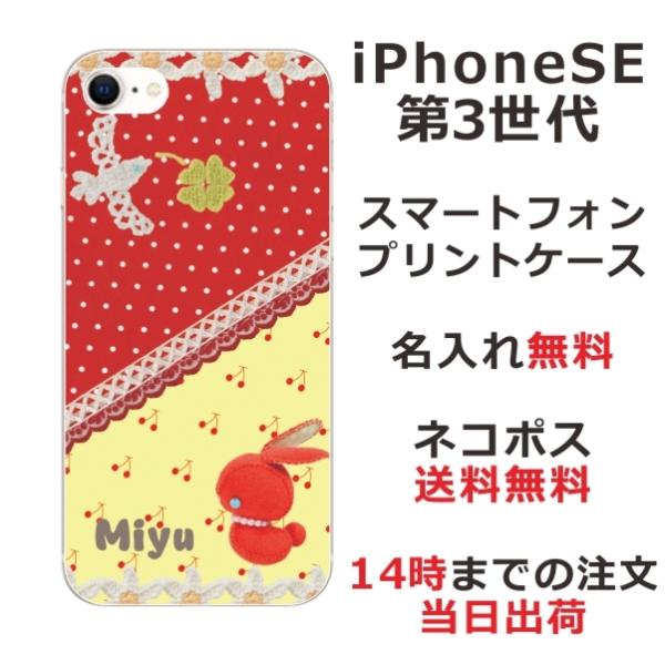 iPhone SE 第3世代 らふら 名入れ スマホケース 赤ウサギ 白い鳥