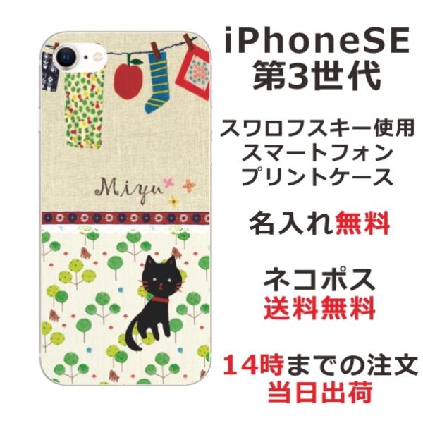 iPhone SE 第3世代 らふら 名入れ スマホケース 黒猫 洗濯物