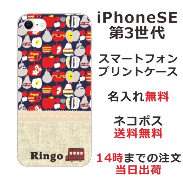 iPhone SE 第3世代 らふら 名入れ スマホケース 北欧デザイン フルーツ ネイビー
