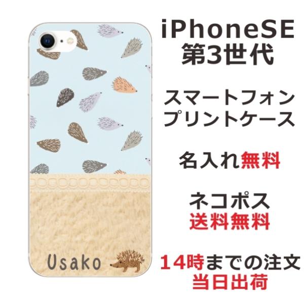 iPhone SE 第3世代 らふら 名入れ スマホケース 北欧デザイン ハリネズミ