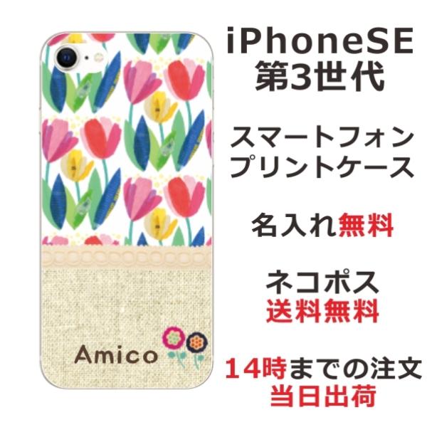 iPhone SE 第3世代 らふら 名入れ スマホケース 北欧デザイン チューリップ