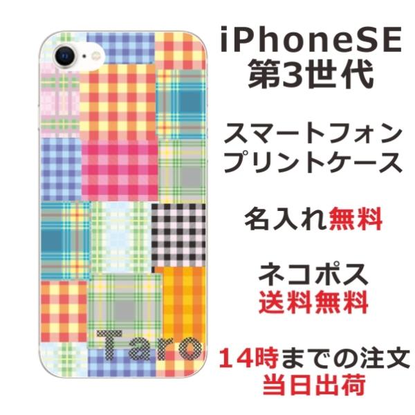 iPhone SE 第3世代 らふら 名入れ スマホケース カラフル チェック