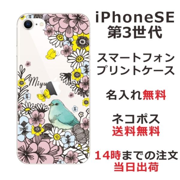iPhone SE 第3世代 らふら 名入れ スマホケース フラワーバード