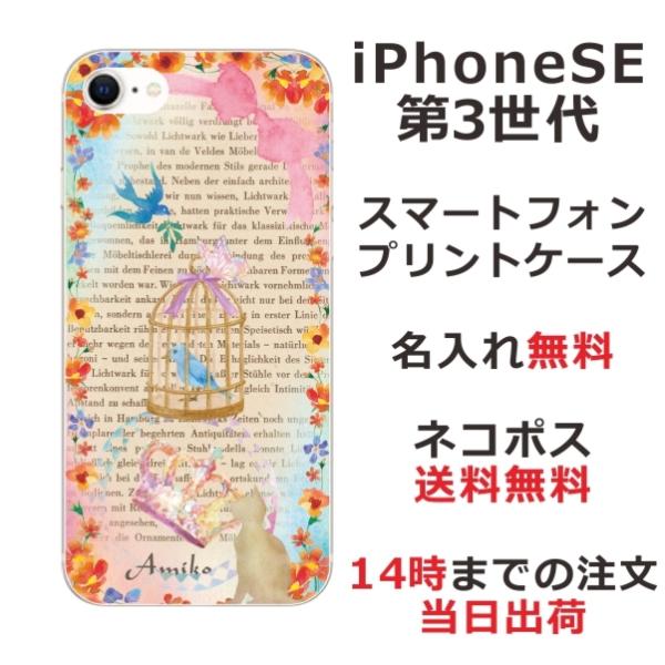 iPhone SE 第3世代 らふら 名入れ スマホケース バードケージブック