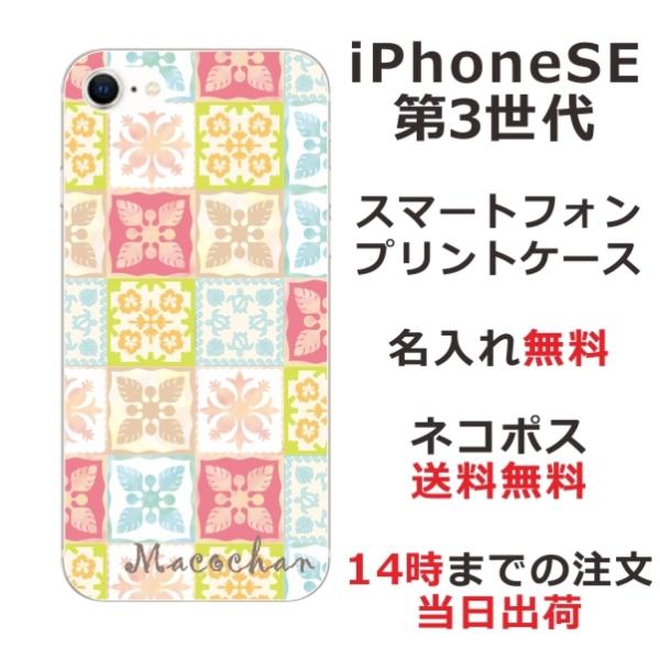 iPhone SE 第3世代 らふら 名入れ スマホケース ハワイアン ハワイアン キルト