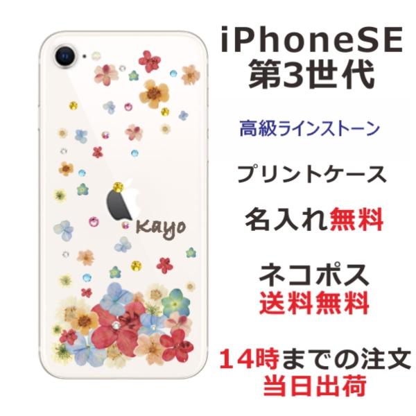 iPhone SE 第3世代 らふら 名入れ スマホケース ラインストーン スマホカバー 押し花風 パステルダンシンフラワー