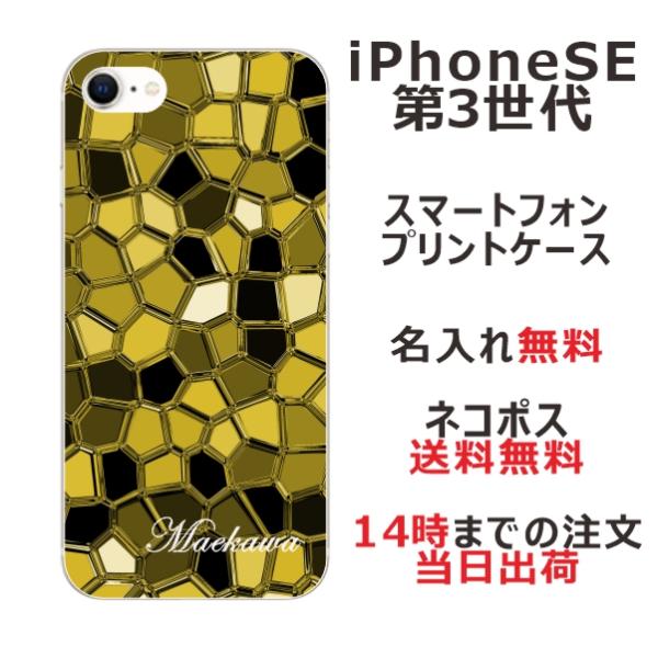 iPhone SE 第3世代 らふら 名入れ スマホケース ゴールド モザイク