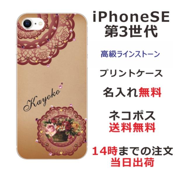 iPhone SE 第3世代 らふら 名入れ スマホケース ラインストーン アンティークキャット