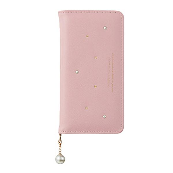 iPhone X XS ピンク プライベート Apple アップル パールチャーム 手帳型 ブックタイプ エレガント スワロフスキー クリスタル ストラップ カードポケット