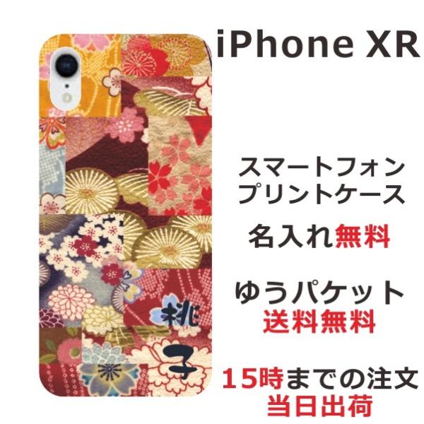 iPhone XR ケース アイフォンXR カバー らふら 和柄 着物パッチワークピンク