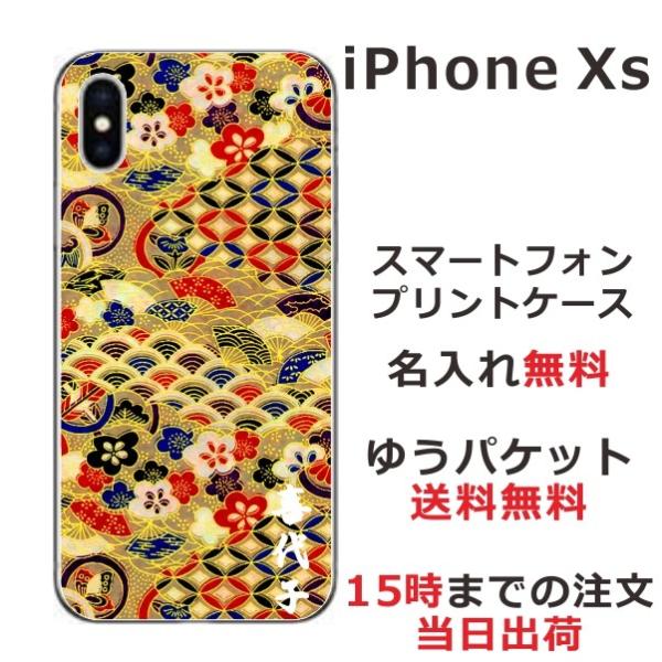 iPhone Xs ケース アイフォンXs カバー らふら 和柄 千代紙ゴールド