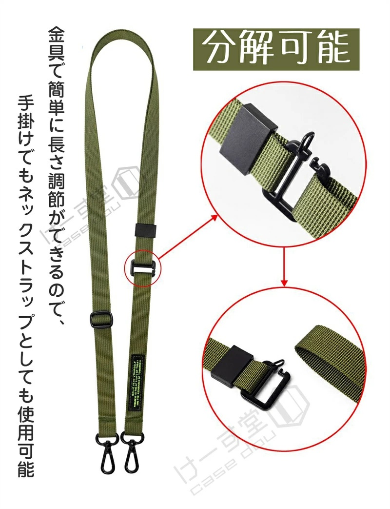 - ※当店のテキスト・商品画像を無断転載・盗用を固く禁じます。※ 商品:落下を防止する着脱可能なストラップホルダー 商品詳細 ➤素材:強度に優れたナイロン糸/錆びにくいアルミ ➤セット内容:ショルダーストラップ/ストラップホルダー ※スマホケースは付属しておりません。 ➤特徴: 挟むだけ、手ぶらでスマホを肌身離さず持ち歩ける!スマホとの接続は付属するホルダーを手持ちのケースに差し込むだけ。 太く厚みのある丈夫なクライミングロープを採用しており、耐久性が高いのが魅力。細部まで丁寧に仕上げられナスカンです。 肩に通して使うショルダー型に加え、首から下げるネック型にも対応しています。首や肩に掛けておけば必要な時にすぐ使えます。 スマートフォンの機種を問わず、スマホケースの充電ホールに対応する仕様で、マルチに使える。手帳型のスマホケースに装着するにもOK。 いつも使う物にストラップを装着しておけば、付け替え簡単・忘れ物防止役立ちます。パスケース、プレーヤー、社員証、自動車の鍵、通行証などのストラップホールを備えた品物にもオススメ♪ スマホを肩掛けできるショルダーストラップで、両手を解放。お子様とのお出かけや買い物には落下防止としても役に立ちます。 快適性・耐久性に優れ、日常使い・旅行・イベントにも最適。様々なシーンで用途に合わせて活躍してくれます。 ➤対応 充電ホールを備えたスマホケース全般に 社員証、パスケースや自動車の鍵などに デジタル一眼レフカメラに ▼納期について ※在庫が無い場合お取り寄せとなります。お取り寄せ商品のお届け目安につきましては商品リスト選択欄にてご確認ください。 ※在庫がある商品は、 2〜3営業日に発送予定です。(店舗休業日を除く) ▼ご注意ください ※商品のお色は撮影時の環境などにより、実際の商品と多少の違いが生じることがございます。 実物の色に近づけるように努めていますが、お使いの環境により実物の色と異なって見える場合がございます。 ※入荷する時期によっては、生地の色味、質感等が若干変わる場合があります。 ご了承の上お買い求めください。 ※万が一在庫切れや入荷待ちとなる場合は別途メールにてご連絡いたします。※本製品の利用による本体の紛失、破損、汚れ、及び内部データの破損には一切補償いたしかねます。 ▼関連キーワード スマホ ストラップ 手首 おしゃれ かわいい スマホショルダーストラップ 長さ調節 太い 大人 かわいい beitneckstrap ストラップホルダー付きスマホストラップ けーす堂 紐 太め 頑丈 casedou ショルダーストラップ けーす堂 スマホ ホルダーセット ストラップ けーす堂 スマホ ホルダーセット ストラップ スマートフォン用 ストラップホルダー 長さ調節可能 シンプル お洒落 カジュアル けーす堂 全機種対応 携帯 スマホ 肩掛け 挟むだけ 可愛い 長さ調節 高見え 斜めがけ 取付 けーす堂 取り付け 外付 外付け 後付け 落下防止 スマホ ストラップ おしゃれ オシャレ 頑丈 金属 casedou ステンレス 取外可 金具 部品 首かけ ネックストラップ 頑丈 紐 斜め掛け スマホストラップ かわいい 紐 ひも パラコード 大人 レディース メンズ バッグ用 スマホ用 単品 丈夫 付け替え アウトドア ショルダーベルト 太い アウトドア カラビナ キラキラ ピンク casedou ル 首から下げる 首から 首 から 下げる 首かけ 首掛けベルトのみ 首掛け 肩掛け スマホ用 付け替え 幅広 かける 首から掛ける 掛ける 携帯電話 スマホ ハンドストラップ 金属 けーす堂 ホール プレート 外付け 後付け ストラップホール 外付け けーす堂 ストラップホール けーす堂 後付けストラップホール クライミングロープ 撮影 ななめ掛け ななめがけ 肩掛け けーす堂 肩かけ 肩紐 けーす堂 肩ひも 携帯ショルダ 金具 挟むだけ 外付けストラップホール 紐 送料無料 iphoneケース けーす堂 ストラップ 太め iphone casedou Android アウトドア Galaxy Xperia ギフト お返し プレゼント ペア おそろい シンプル ロープ けーす堂 頑丈 丈夫 ちぎれない 落とさない 痛くない casedou バッグチャーム バッグ かばん 持ち手 韓国 ロング 落下防止 紛失防止 スマホホルダー ホルダー 紐 ひも 取り外し可 けーす堂 挟むだけ 手ぶら女子 けーす堂 はさむだけ 挟む casedou スマホアクセサリー 端末を傷つけない けーす堂 シンプル 柔らかい 丸ひもタイプ スマホ スマートフォン スマートホン casedou ショルダーストラップタブ けーす堂 ショルダーベルト 幅広 太め バッグ用 単品 大人 かわいい 携帯電話 長さ調節 けーす堂 両手解放 iPhone Android 対応 頑丈 軽量 紐 推し活 旅行 撮影 ストラップ けーす堂 携帯ストラップ iphoneストラップ プレゼント ギフト 贈り物 誕生日 クリスマス 携帯 壊れにくい 持ち運び 種類 耐久性 スマホショルダー ストラップ 太め 長さ調節 けーす堂 アクセサリー 買い替え けーす堂 スマホショルダーベルト スマホ用ショルダーストラップ スマホショルダー紐 スマホ用ショルダー ス
