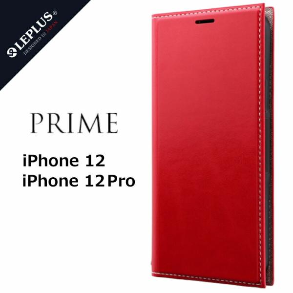 iPhone 12/iPhone 12 Pro 薄型PUレザーフラップケース PRIME レッド 赤 LP-IM20PRIRD カードポケット スタンド設計 レザー 手帳型 ケース カバー シンプル