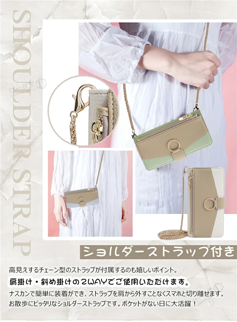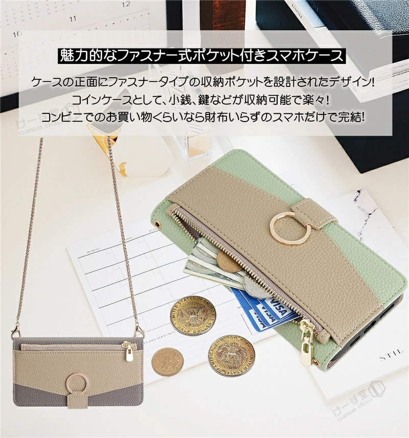 - 商品仕樣 手帳型ケース 商品のおすすめポイント ● 高品質レザー素材で作られていて、肌触りが良く、程よい光沢感もあります。落ち着いた雰囲気のデザインで、高級感のある外観を作り出します。 ● 端末装着部分には柔軟なTPU素材を採用し、簡単に着脱が可能です。落下の衝撃も吸収して、スマホをしっかり保護してくれます。 ● ケースの内側には、縦向きの収納ポケットが3つあり、名刺まで入る少しゆとりのあるサイズで、取り出しやすく、落ちにくい絶妙な収納になっていました。カードホルダーのサイドにも収納が付いており、大きめサイズのカードや紙幣、クーボン券などを入れることも可能です。 ● サイドにはマグネット付きなので、簡単に開閉できます。吸着力がぴったりで、スマホやカードなどの落下を防ぎます。 ● メイクのチエックもできる小さな鏡もついているので、便利ながら機能性も増しています。 ● 手帳型ケースなので、横に置くとスタンドになり、両手が解放され、お気軽に動画視聴や読書、ビデオ鑑賞を楽しむことができます。 ● ケースと同色のストラップ(ショルダーストラップとショートストラップ)が2本付属しており、首掛け、肩掛け、斜め掛けが可能で両手が自由になります! ● 各機種にピッタリの専門設計なので、ケースを装着しても、カメラ、電源ボタン、音量ボタン等がそのまま使用可能です。 商品の対応機種 iPhone 17e(6.1inch) iPhone 17(6.3inch) iPhone air(6.5inch) iPhone 17Pro(6.3inch) iPhone 17ProMax(6.9inch) iPhone 16e (6.1inch) iPhone 16 (6.1inch) iPhone 16Pro (6.3inch) iPhone 16Plus (6.7inch) iPhone 16ProMax (6.9inch) iPhone 15 (6.1inch) iPhone 15Pro (6.1inch) iPhone 15Plus (6.7inch) iPhone 15ProMax (6.7inch) iPhone 14 (6.1inch) iPhone 14Pro (6.1inch) iPhone 14Plus (6.7inch) iPhone 14ProMax (6.7inch) iPhone 13 (6.1inch) iPhone 13Mini (5.4inch) iPhone 13Pro (6.1inch) iPhone 13ProMax (6.7inch) iPhone 12 (6.1inch) iPhone 12Pro (6.1inch) iPhone 12Mini (5.4inch) iPhone 12ProMax (6.7inch) iPhone 11 (6.1inch) iPhone 11Pro (5.8inch) iPhone 11ProMax (6.5inch) iPhone X/ iPhone XS (5.8inch) iPhone XsMax (6.5inch) iPhone XR (6.1inch) iPhone SE(第3/2世代)/8/7 iPhone 8Plus / iPhone 7Plus (兼用サイズ) 商品材質 ● 高品質のPUレザー+ソフトなTPU素材 注意事項 ※紹介画像はイメージです、一部他機種のケースを使用している場合がございます。 ※本製品の利用による本体の紛失、破損、汚れ、および内部データの破損には一切保証いたしかねます。 ※入荷する時期によっては、生地の色味、質感等が若干変わる場合があります。ご了承の上お買い求めください。 ※商品のお色はお客様のPC環境によって多少色合い、見え方など違ってまいりますのでご了承下さいますようお願いします。 関連キーワード iPhone16 ケース アイフォン16ケース アイホン16 ケース スマホケース ケータイケース 保護ケース スマホカバー カードケース カードホルダー カードポケット iPhone16pro ケース アイフォン16proケース アイホン16pro アイフォン16プロ ケース カード収納 iPhone16 カバー アイフォン16カバー アイホン16 カバー 携帯ケース iPhone15 ケース アイフォン15ケース アイホン15 ケース 携帯カバー iPhone15 カバー アイフォン15カバー アイホン15 カバー 身だしなみチェック 鏡 手帳 手帳型 手帳ケース 手帳型カバー 鏡付き 化粧 化粧直し 人気 iPhone16promax ケース アイフォン16プロマックス ケース アイホン16プロマックス ケース 人気ケース iPhone16plus ケース アイフォン16plusケース アイホン16plus ケース 片手操作 紐 ひも 紐付き ロング ストラップ ロングストラップ iPhone XR ケース アイフォンxrケース アイホンXR ケース ストラップ付き ストラップホール ストラップ穴 iPhone 7plus iPhone8plusケース iPhone7plus ケース アイフォン8plus 7plusケース アイホン7plus 8plus ケース スマホストラップ iPhone15pro ケース アイフォン15proケース アイホン15pro アイフォン15プロ ケース スマホ ストラップ iPhone13 カバー アイフォン13カバー アイホン13 カバー 韓国風 iPhone14 カバー アイフォン14カバー アイホン14 カバー ネック 首 高品質PUレザー iPhone15plus ケース アイフォン15plusケース アイホン15plus ケース 手触りいい 合皮 レザーケース iPhone15promaxケース アイフォン15プロマックス ケース アイホン15プロマックス ケース 首掛け スタンド 耐衝撃 耐摩擦 衝撃吸収 高耐久性 キズ防止 保護カバー iPhone XsMax ケース アイフォンXsMaxケース アイホンXSMax ケース スマホスタンド スタンド機能 iPhone14pro カバー アイフォン14proカバー アイホン14pro カバー アイフォン14プロ カバー 首掛けストラップ iPhone17e ケース iPhone 17 E ケース iPhone 17e ケース iPhone17eケース iPhone17e 2026 ケース アイフォン17e ケース アイホン17e ケース アイフォン17eケース アイホン17eケース ネックストラップ付き iPhone14 ケース アイフォン14ケース アイホン14 ケース 肩掛けストラップ スマホ保護 iPhonese2ケース iphonese3ケース iphone7ケース iphone8ケース iPhone se第3世代 se第2世代 8 7 アイフォンse3 第3世代 se2 第2世代 8 7ケース アイホンse2 se3 ケース iPhone se2ケース iphone se3 ケース 保護カ
