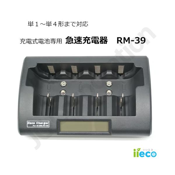iieco 充電式電池 対応 充電器 RM-39 単1形 単2形 単3形 単4形 6P形 対応 液晶表示 4本同時充電可 エラー検出対応 PSE適合 05291
