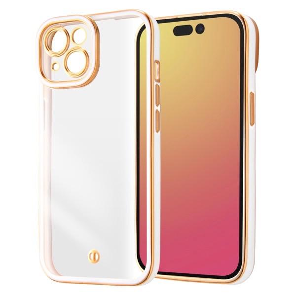 アイフォーン アイフォン アイホーン アイホン iPhone iPhone 15 (2023年秋6.1インチ2眼) 背面ケース TPU ストラップホール ホワイト/ゴールド クリア