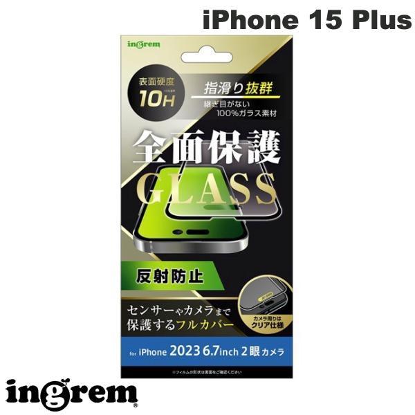 ingrem イングレム iPhone 15 Plus ガラスフィルム 10H 全面保護 反射防止 ブラック IN-P43F/HGB ネコポス送料無料