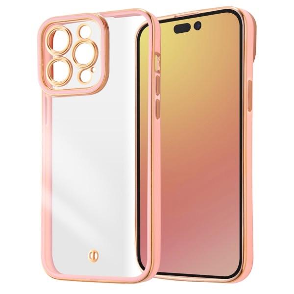 アイフォーン アイフォン アイホーン アイホン iPhone iPhone 15 Pro Max (2023年秋6.7インチ3眼) 背面ケース TPU ストラップホール ピンク/ゴールド クリア