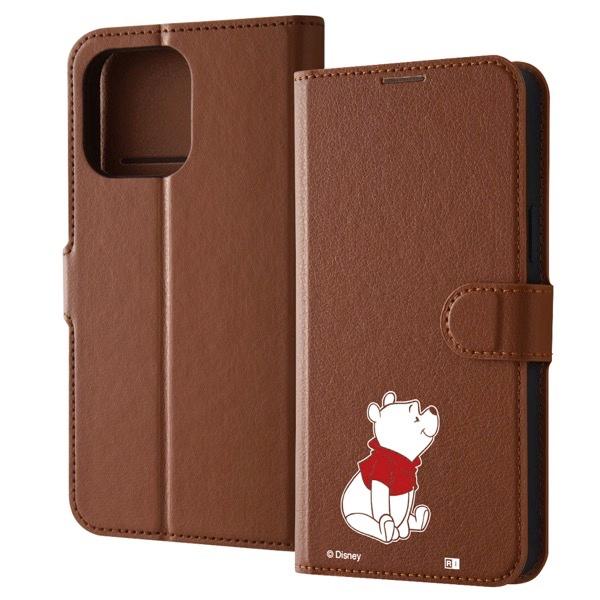 ingrem イングレム iPhone 15 Pro Max ディズニー 手帳型レザーケース シンプル マグネット くまのプーさん_sitting
