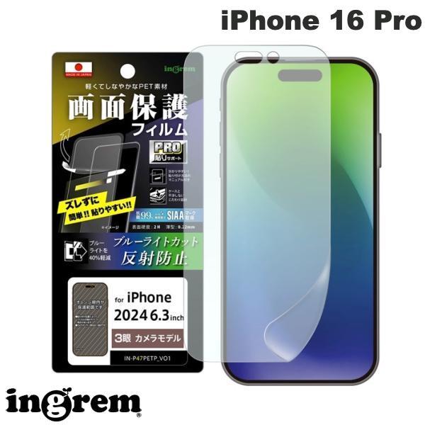 ingrem イングレム iPhone 16 Pro PRO貼りサポート PETフィルム ブルーライトカット 反射防止 衝撃吸収 抗菌・抗ウイルス 平面保護 指紋防止 ネコポス可