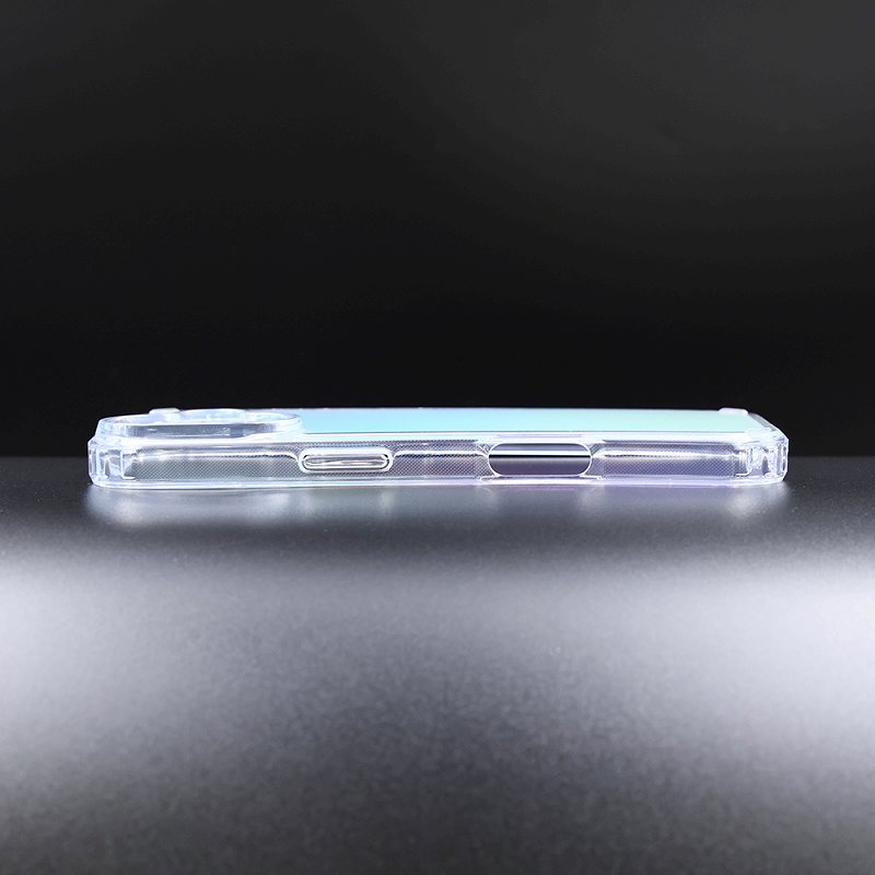 光によって色が変わって見える。フチが高く画面やカメラが傷つきにくい。ボタンや端子周りまで精密に保護。密着痕が出にくいマイクロドット加工。