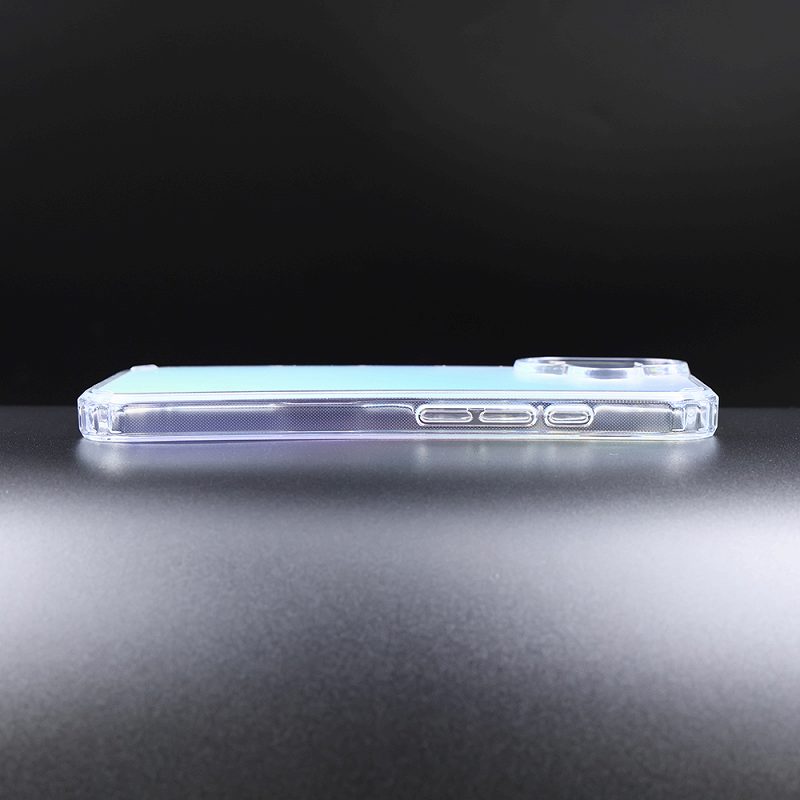 光によって色が変わって見える。フチが高く画面やカメラが傷つきにくい。ボタンや端子周りまで精密に保護。密着痕が出にくいマイクロドット加工。