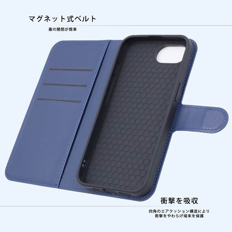 カードが入れられる大容量な収納ポケット。軽量で薄く持ち運びしやすい。動画視聴などに便利なスタンド機能付き。ケースの蓋を閉じたまま通話が可能。