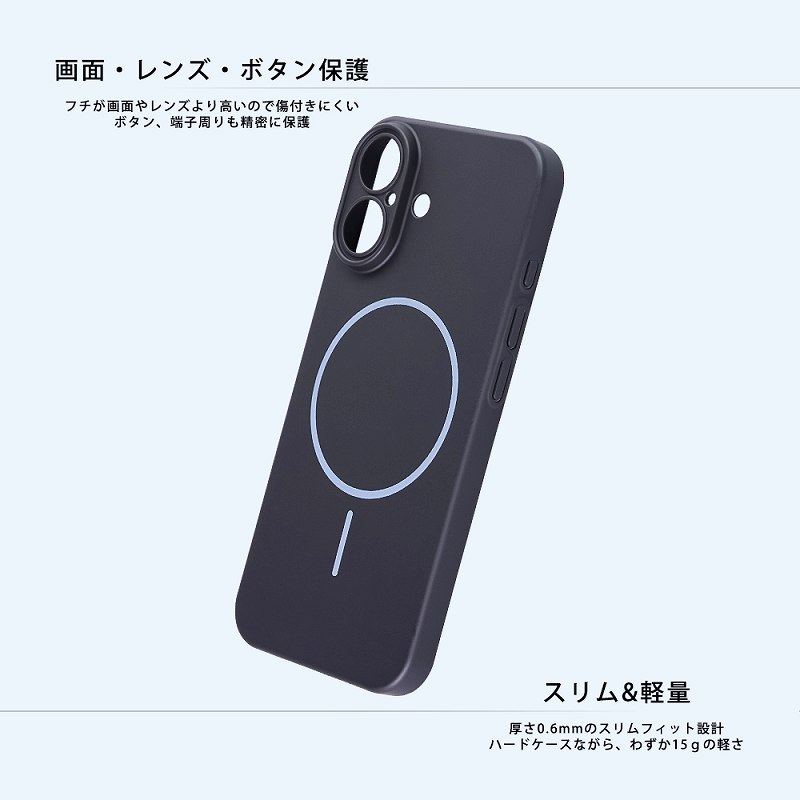 端末のフォルムや手ざわりを損なわず、スリムに持ち歩けるハードケースです。