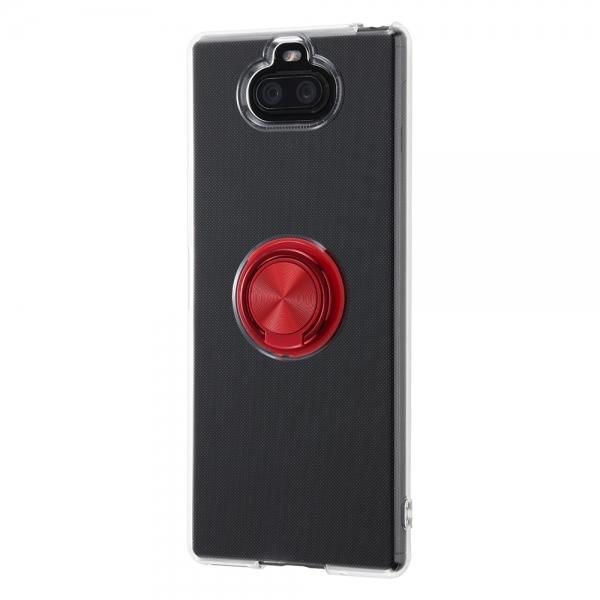 イングレム Xperia 8/Lite ケース 耐衝撃 リング ソフトケース クリア ストラップ ホール付き ス落下防止 (SOV42 対応) レッド IN-RXP8TC30/RM