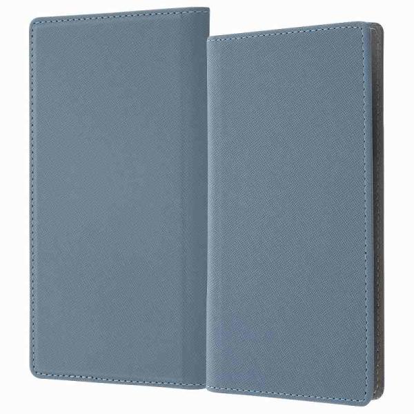 汎用手帳型ケース FLEX Lサイズ 型押しレザー /ブルー/ライトグレー