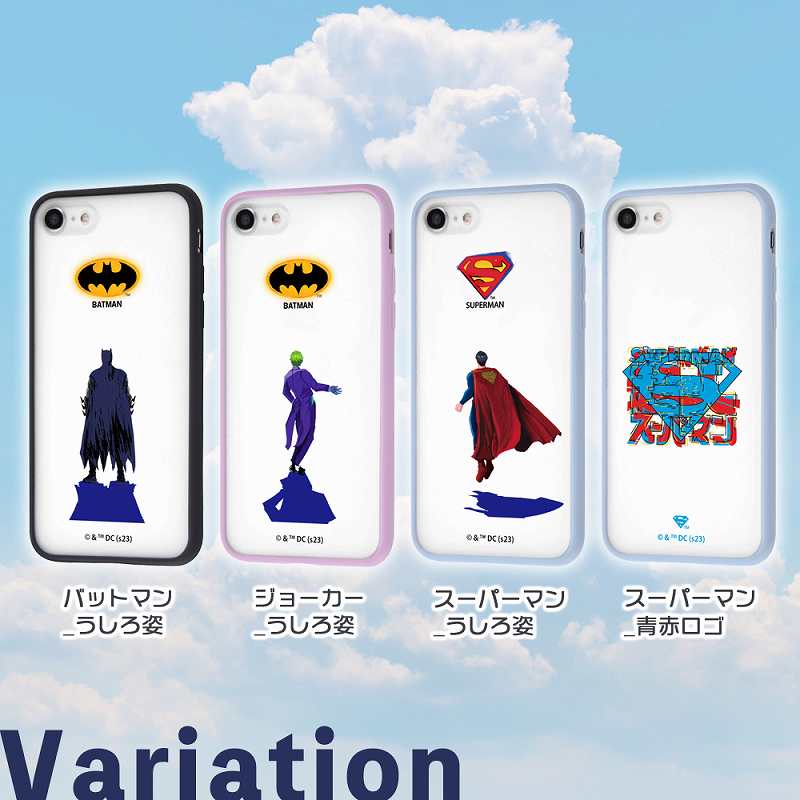 『バットマン』のデザインが映える、ほんのり透けてシアーなマットハイブリッドケース。側面のやわらか素材が衝撃を吸収し端末を保護します。