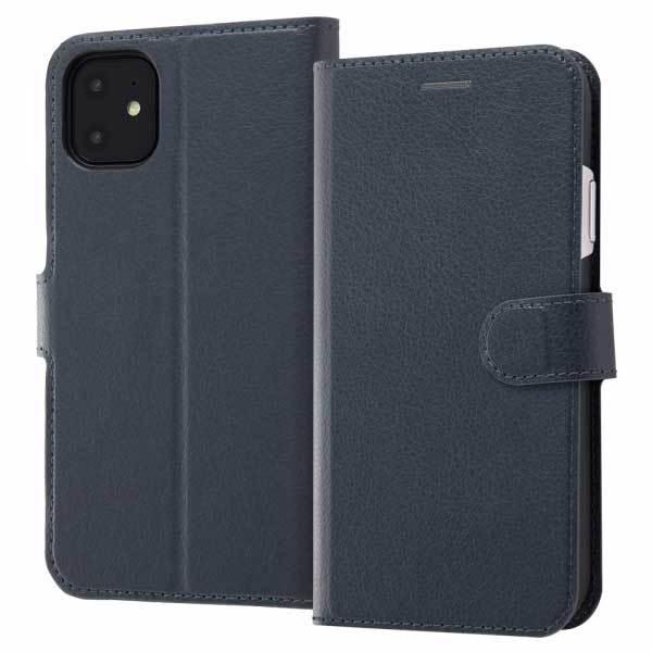 iPhone 11 手帳型ケース ダークネイビー 手帳カバー シンプル マグネット カードポケット スタンド ストラップホール イングレム RT-P21ELC1-DN