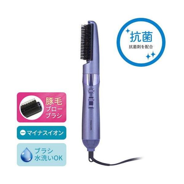 - ・美容室愛用の豚毛ブラシを採用・サロンブローのようなまとまりのあるつややかな髪へ・天然由来の保湿成分「ツバキオイル」を豚毛ブローブラシに配合※うねりやクセをしっかり伸ばしてつややかな髪へ導く「豚毛ブローブラシ」硬さの異なる硬質猪毛と軟質豚毛の2種類の天然毛を独自の配合でブレンド。太くて固い硬質猪毛が髪の毛をしっかりキャッチし、柔らかくしなやかな軟質豚毛が髪をやさしくいたわりながらブラッシング。心地よい櫛通りで、サロンブローのようなまとまりのあるつややかな髪へ導きます。また、根元をすくい上げるようにして風をあてれば、簡単にトップにボリュームが出せます。天然由来の保湿成分「ツバキオイル」を豚毛ブローブラシに配合※マイナスイオンで髪の広がりの一因となる静電気を低減※ツバキオイルは多孔質マイクロカプセルに含まれています。マイクロカプセルの大きさは2〜3マイクロメートルで目には見えません。豚毛ブローブラシのベースとセンター3列に、マイクロカプセルを含ませています。付け替え簡単!選べるブラシ方向本体にブラシを差し込んで、時計回りに回すだけで簡単に取り付けられる回転ロック式を採用。使い方や利き手に合わせて前後左右の4方向にブラシの向きを変えられます。その他の特長ブラシ水洗いOKワンタッチで冷風に切り換えできるクールスイッチSET・DRYの風量2段階調節レバーを押すだけラク抜きプラグ抗菌剤配合こちらの商品は「ひと家族様3点限り」となります。同一お届け先、同一名義による4点以上のご注文、または当店が転売目的と判断した場合、ご注文を取消しさせていただく場合がございます。●本体寸法:高さ / 51mm 幅 / 213mm 奥行き / 48mm(本体のみ)●本体質量:265g(本体のみ)●消費電力:700W(HOT-DRY)/300W(HOT-SET)●電源:AC100V 50/60Hz●スイッチ:切替スイッチ「DRY-SET-OFF」 クールスイッチ「COOL」●搭載イオン:マイナスイオン●付属ブラシ:豚毛ブローブラシ●ラク抜きプラグ:〇
