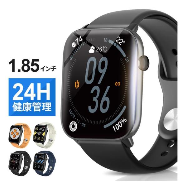 スマートウォッチ M18 1.85インチ大画面 Bluetooth5.3搭載 24時間健康管理 自動体温検知 血中酸素濃度測定 多機能 着信通知 睡眠検知 IP68防水 軽量