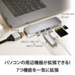 - USB Type-Cコネクタを搭載したノートパソコンを7ポート拡張できるPC直結タイプのUSB-Cマルチアダプターです。多機能7in1ミニドック MacBookなどUSB Type-Cコネクタを搭載したノートパソコンを7ポート拡張できるPC直結タイプのUSB-Cマルチアダプターです。 端子はUSB 3.0x2、USB-Cx1(PD60W充電と5Gbpsデータ転送両対応)、4K HDMIx1、MicroSD/SDカードリーダーがあり、これ1つで様々な周辺機器を拡張できます。 *カードリーダーはUSB3.0規格で、容量は最大2TBに対応しています。 4K HDMIモニター増設 HDMIポートから4K 30Hz出力でモニタの拡張が可能です。Type-Cコネクタを搭載したノートパソコンと接続すれば、デュアルモニタで画面の拡張ができ、作業効率をUPできます。大画面でのプレゼンテーションやマルチスクリーンでの拡大表示など多くの場面で活躍します。 *HDMIケーブルは同梱しておりません *ご使用のパソコンがDisplayPort Alt Modeに対応している必要がございます。 パワーデリバリー対応(PD60W) USB-Cポートは別売りのPower Delivery対応電源や充電器と接続すれば、最大PD60Wサポートでパソコンやタブレットの充電が可能です。充電しない時はデータ通信に使用できます。 *充電される側の機器がUSB PD規格に対応している必要があります。 超高速データ転送 USB3.0 5Gbps(理論値)はUSB2.0の約10倍以上の転送速度を実現する超高速データ転送。外部ストレージからのデータ転送がより早く転送できます。 高級感のあるメタルハウジング 放熱性に優れるアルミ素材を採用。シックなスペースグレイ色で薄型ノートパソコンとの相性もバッチリです。また、LED表示により接続状態を確認できて便利です。 スリムサイズ 厚みわずか11mmの超スリムデザインでポケットにもカンタンに入るサイズです。いつでも手軽に持ち歩けます。 製品特長 単一のハブに必要なポートを全て収納 4K HDMIディスプレイ出力に対応 (最大4K@30Hz) USB 3.1 Gen1で最大5Gbps高速データー転送 データ転送&Power Delivery 3.0 両対応のUSB Type-C ポート 薄型、洗練された設計 放熱性に優れるアルミニウム筐体 製品仕様 インターフェイス USB 3.1 Gen1 Type-C(オス USB 3.1Gen1準拠) ポート・スロット ・ USB 3.1 Gen1 Type-C x 1 (メス、 Power Delivery、データ転送両対応) ・ USB 3.0 Type-A x 2(メス) ・ HDMIポート x 1 ・ SD x 1 ・ micro SD x 1 サイズ 約107 (W) x 32 (H) x 11(D)mm 重量 約49g メーカー保証 2年間 ※ 「Apple USB SuperDrive」はメーカー制限にて対応しておりません、予めご了承ください。 ※ USB Type-Cを備えるホスト側がDisplayPort Alternate modeに対応している必要があります。 ※ 本製品のUSB Type-CポートはPowerDelivery入力&ハブ機能のみになります、DisplayPort Alternate Modeには対応しておりません。 本製品のUSB Type-Cポートを用いたディスプレイへの映像出力はできませんのでご注意ください。 パッケージ内容 JCD386本体 クイックインストールガイド 保証書