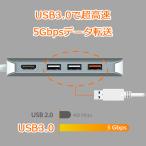 - USB Type-Cコネクタを搭載したノートパソコンを9ポート拡張できるUSB-Cマルチアダプターです。PD3.0とDisplayPort Alt Modeに対応。 ・サイズ 50(W)×105(H)×16.5(D)mm ケーブル約14cm ・素材/材質 アルミニウム ・注意点 モニターの発色によりお色が違って見える場合がございます。多機能9in1マルチアダプタ MacBookなどUSB Type-Cコネクタを搭載したノートパソコンを9ポート拡張できるUSB-Cマルチアダプターです。 端子はUSB 3.0x3(2.4A急速充電搭載x1)、USB-C 3.1x1(Power Delivery60W充電対応)、HDMIx1、ギガビット有線LANx1、SDカードスロット×1、MicroSDカードスロットx1の9種類で、これ1つでモニター、プロジェクター、ルーター、外付けHDD・SSD、USBメモリなど様々な周辺機器を拡張できます。 4K HDMIモニター増設 高解像度HDMI 2.0出力、最大3840 x 2160 30Hzに対応。デュアルモニタで画面の拡張ができ、作業効率をUPできます。大画面でのプレゼンテーションやマルチスクリーンでの拡大表示など多くの場面で活躍します。 また、DisplayPort Alt Modeに対応しており、USB Type-Cを接続するだけで使用できます。ドライバーをインストールする必要はありません。 *接続されたUSB-C機器がDisplayPort Alt Modeに対応している必要があります。 パワーデリバリー対応(PD60W) USB-Cポートは別売りのPower Delivery対応電源や充電器と接続すれば、最大PD60Wサポートでパソコン・タブレットの充電が可能です。このポートはデータ転送とPD充電のどちらにも対応しています。 ※充電される側の機器がUSB PD規格に対応している必要があります。 超高速データ転送 USB3.0 5Gbps(理論値)はUSB2.0の約10倍以上の転送速度を実現する超高速データ転送。外部ストレージからのデータ転送がより早く転送できます。 またマウスやキーボードなどUSB周辺機器を接続できるのでごニーズに合わせて使用して頂けます。 スマホを同時に充電できる USB TypeAの1ポートは急速充電2.4Aに対応しており、パソコンを使用しながらスマホなどUSBデバイスを同時に充電することができます。 *BC1.2規格でパソコン未接続時に最大2.4A出力、接続時は最大1.5A出力。 *ACアダプタのご使用を推奨致します。 MicroSD/SDカードスロット対応 カメラやスマホの画像データをパソコンに取り込んで管理できます。データのバックアップにも使用できて便利です。 *カードリーダーはUSB3.0規格で、容量は最大2TBに対応しています。 製品特長 パワーデリバリー対応でパソコンの充電をしながら増設した機器の使用が可能 USB Type-C充電用ポート×1、4K HDMI×1、ギガビット有線LANポート×1、USB3.0ポート×3、SD slot×1、MicroSD slot×1 USB急速充電ポート×1搭載(最大2.4A) HDMI最大解像度 4K @30Hz 最大60Wのパワーデリバリ3.0対応 放熱性に優れるメタルハウジング 製品仕様 ホストインターフェイス USB 3.1 Gen 1 Type-C (オス) ビデオインターフェイス HDMI(メス) USBポート USB3.1/3.0×3、USB 3.1Gen1 Type-C×1 その他 SD slot、MicroSD slot、ギガビットLAN 給電方式 バスパワー/セルフパワー ディスプレイ解像度 ※HDMI 4K@30Hz 外形寸法 50(W)×105(H)×16.5(D)mm ケーブル約14cm 質量 約79g (ケーブル含む) メーカー保証 2年間 ※USB Type-Cを備えるホスト側がDisplayPort Alternate modeに対応している必要があります。 ※本製品のUSB Type-CポートはPowerDelivery入力&ハブ機能のみになります、DisplayPort Alternate Modeには対応しておりません。本製品のUSB Type-Cポートを用いたディスプレイへの映像出力はできませんのでご注意ください。 ※「Apple USB SuperDrive」はメーカー制限にて対応しておりません、予めご了承ください ※アルミニウム製筐体は放熱性に優れています。使用中に発生する過剰な熱を発散するため、ハブ筐体が熱くなります。 利用している機能によりますが、正常な動作温度は35〜55℃になります。 パッケージ内容 JCD383本体 クイックインストールガイド 保証書